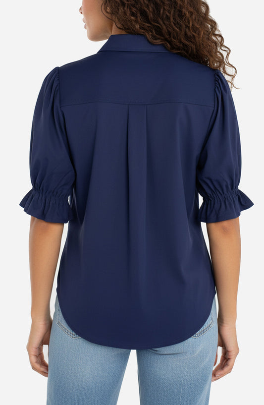 Elbow Puff Sleeve Snap Front Knit Shirt