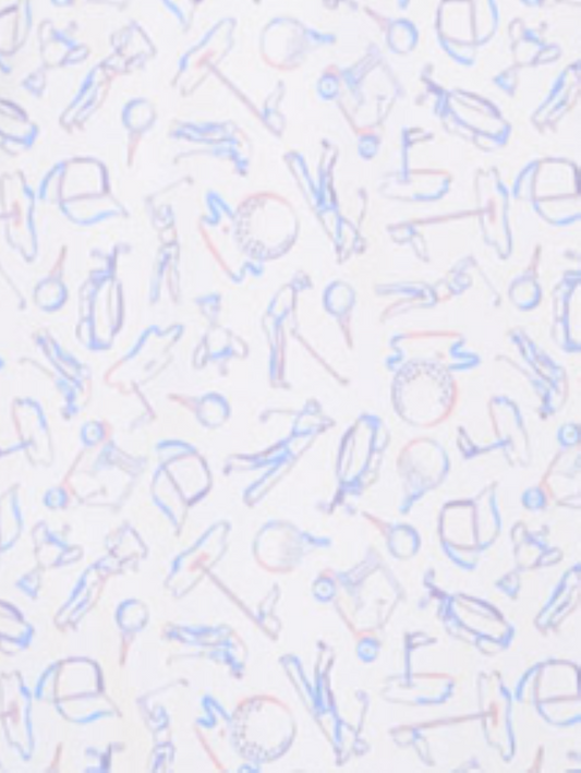 Linton SS Golf Scene Print Performance Polo - White/Blue/Red