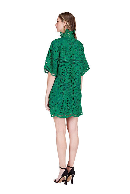 High Neck Tunic Dress - Green Lace
