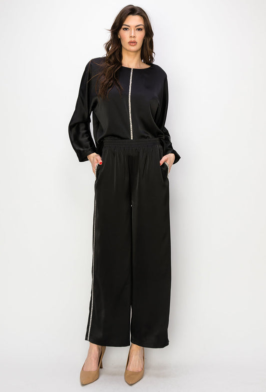 Wynne Satin Pant With Diamond Trim