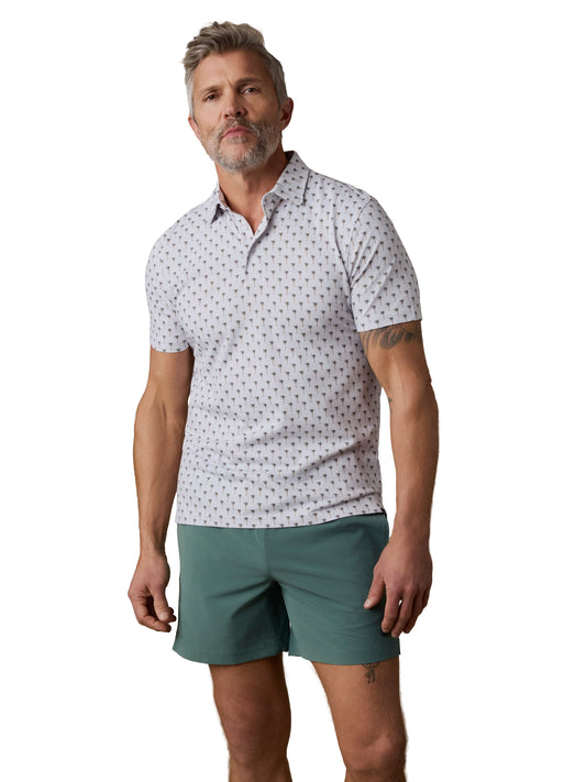 Linton SS Golf Scene Print Performance Polo - White/Blue/Red