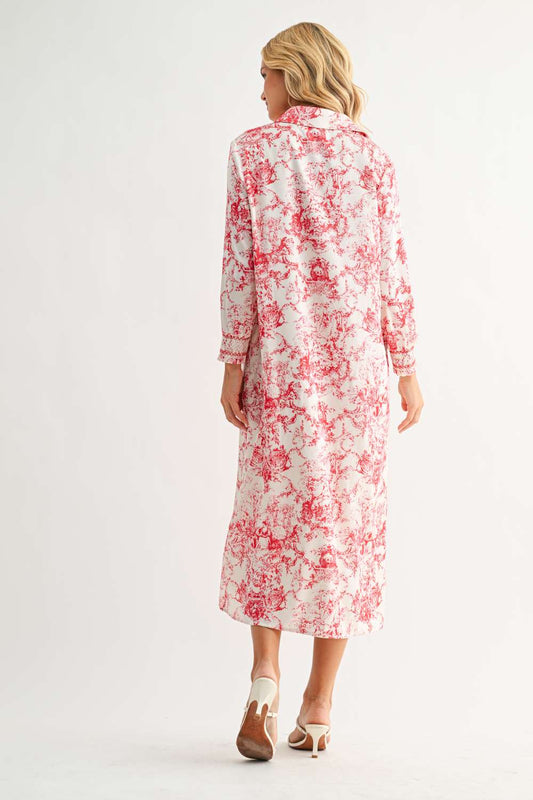 Stand Collar A-Line 50" Dress - Vintage Meadow