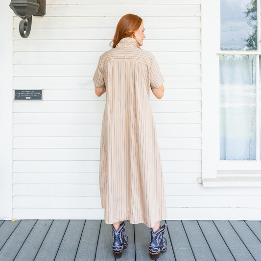 Millie Dress Long Khaki Stripe
