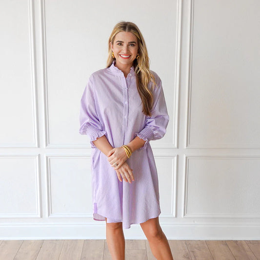 Kimberly Dress Lavender Stripe