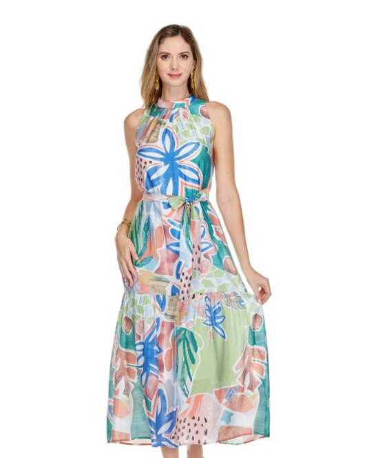 Pleated Neck Maxi - Summer Jungle