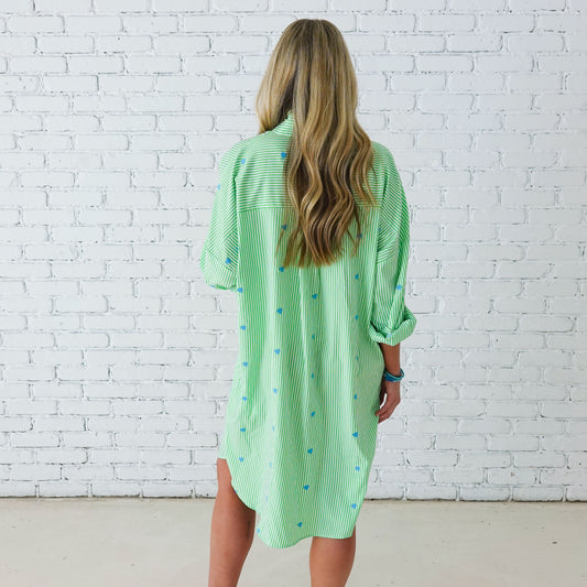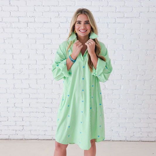 Preppy Stripe Dress With Hearts