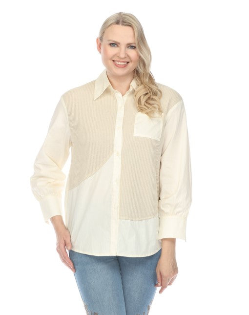 L/S Shirred Shoulder Button Down