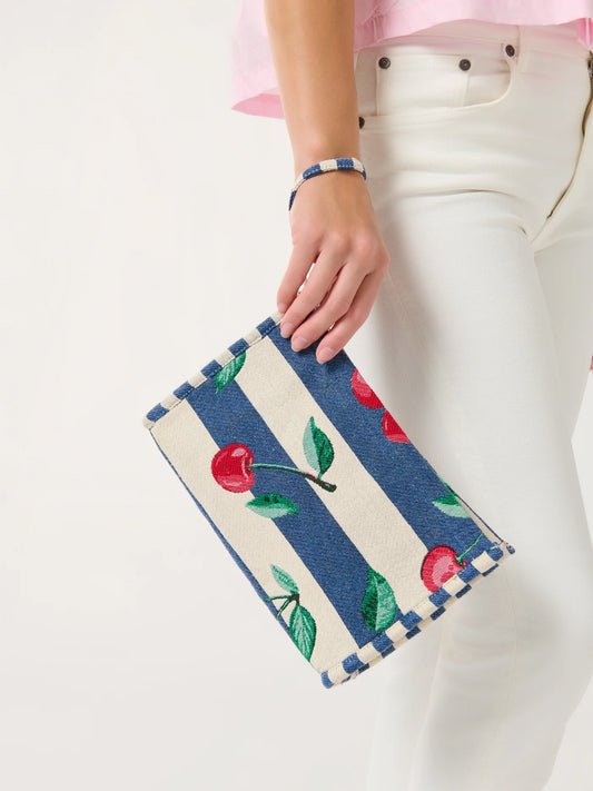 Cherry Stripe Jacquard Wristlet Pouch