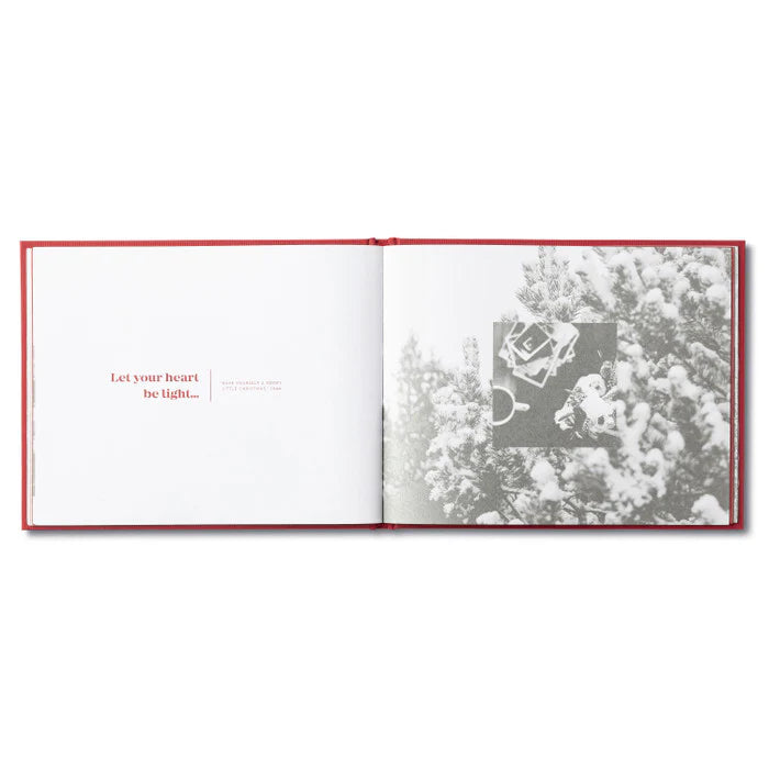 Before it’s even begun, Christmas brings with it a sense of anticipation. The words within these pages invite you to revel in all the joys of the season. Through festive quotes, celebratory sentiments, wintry photography, and holiday song lyrics, this heartwarming, 64-page Compendium book invites you into the nostalgia of this special time of year. Dimensions are 8.75" wide x 7" high. This hardcover book features artistic black and white photographs with dark gray metallic accents throughout as well as silver gilded edges and a textured, foil-stamped cover that resembles a beautifully wrapped gift. Perfect as a Christmas present, family keepsake, coffee table book, or hostess gift.