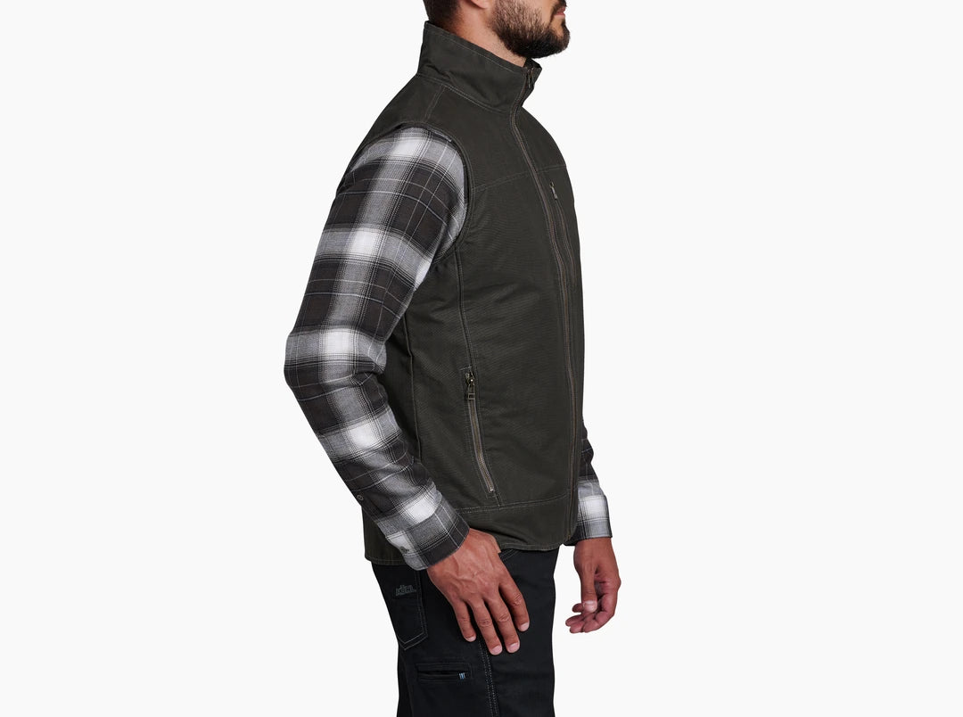 Style and comfort meet rugged durability. Made from a tough, 100% cotton canvas weave that features KÜHL’s unique dye finish, the BURR™ Men's Vest gives you the versatility to adapt to changing weather conditions without overheating. Zippered pockets keep your valuables secure.