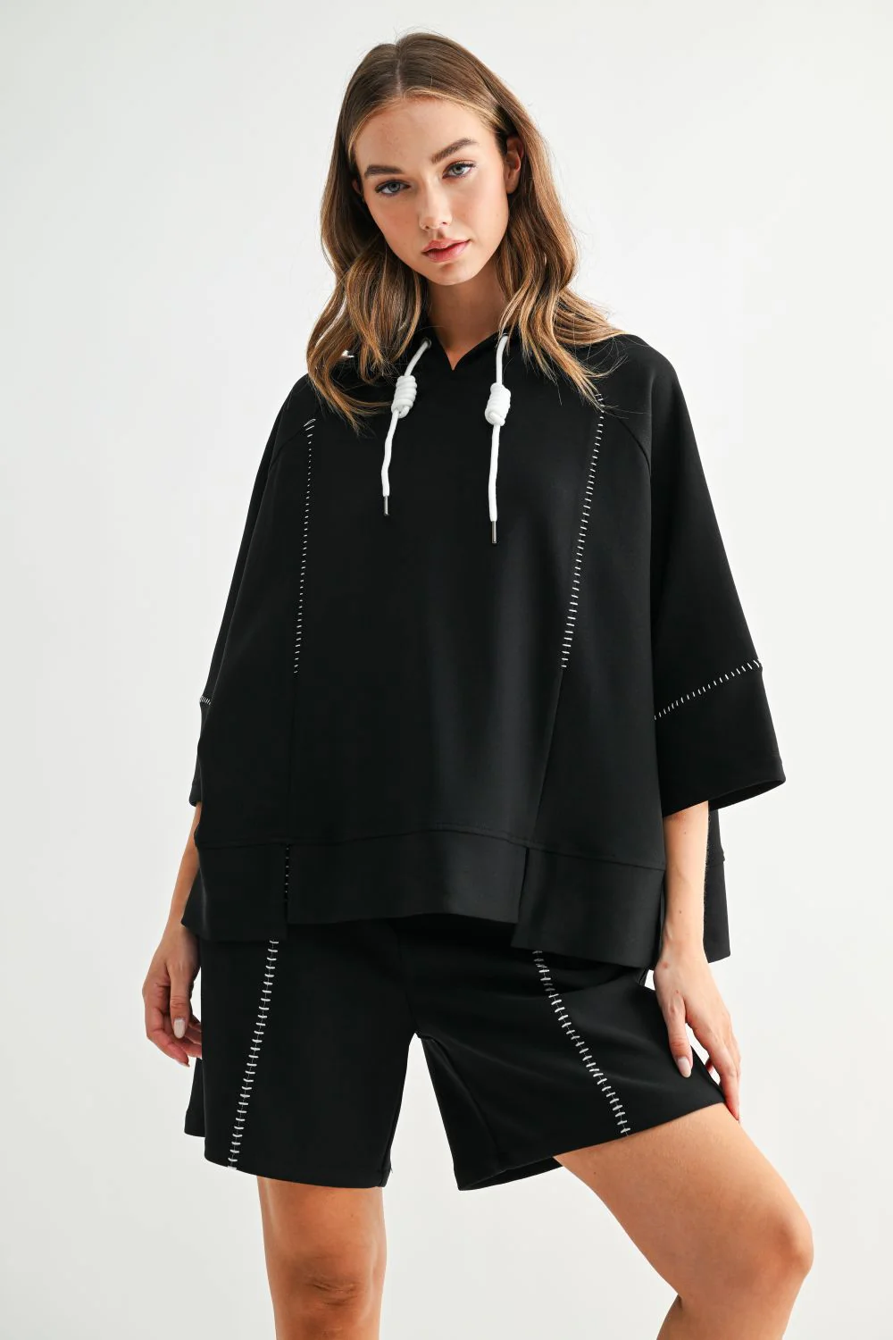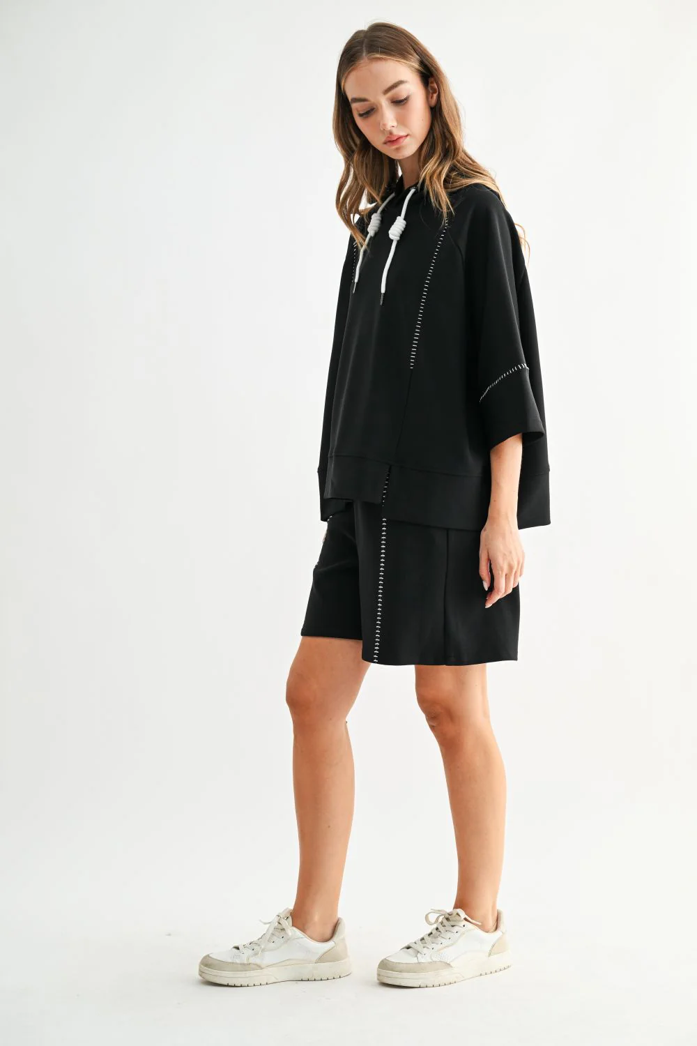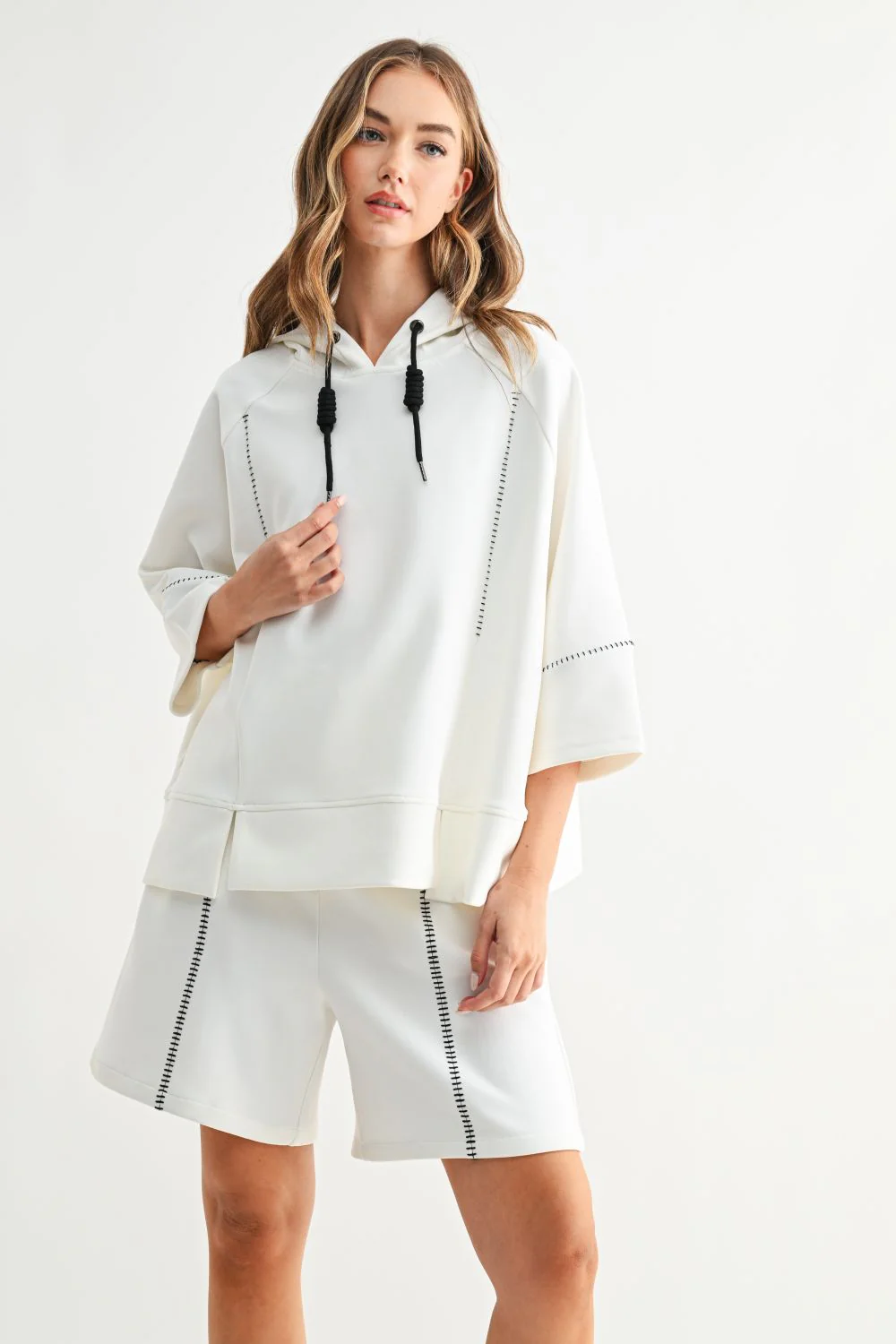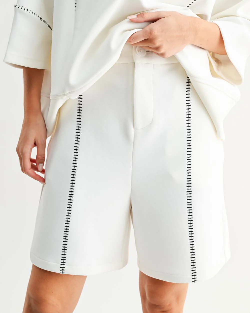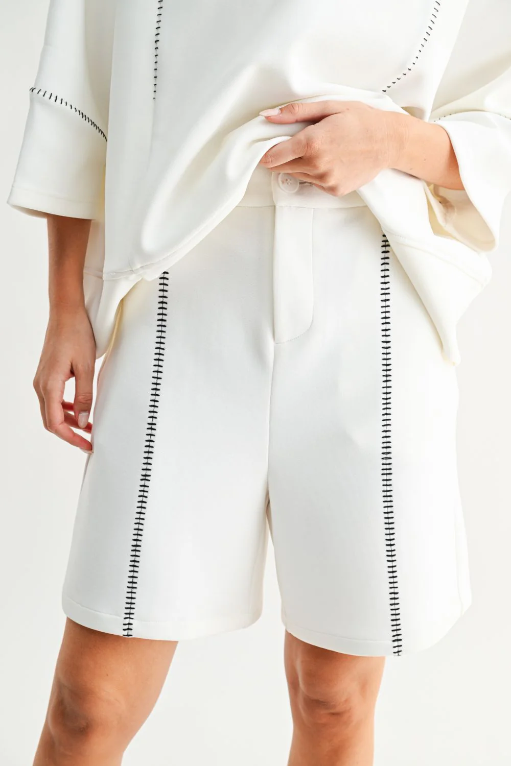 The Kaden Short is an easy white pull-on shorts with a laid-back, modern feel. Featuring a comfortable elastic waist with pockets and contrast stitch detailing for a polished touch. Ideal for everyday wear, weekend errands and travel days.