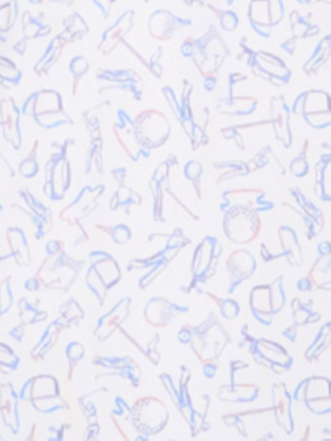 Linton SS Golf Scene Print Performance Polo - White/Blue/Red