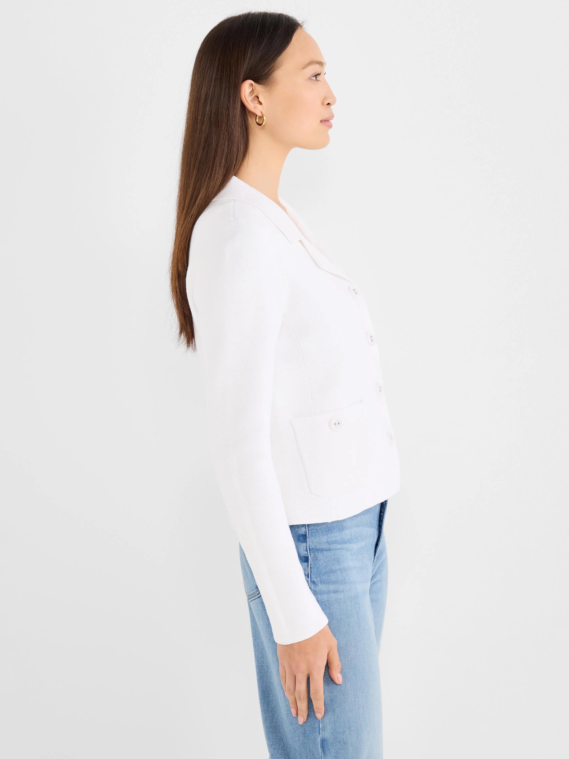 Cardigan comfort meets blazer polish in this hybrid essential. The Milano Knit Jacket blends the ease you crave with the structure that elevates any outfit—perfect for layering over basics or standing solo at dinner. Crafted from a breathable cotton-viscose-polyester blend, it transitions seamlessly from weekend casual to polished occasions. Hand wash cold, lay flat to dry, and enjoy a piece that works as hard as you do.