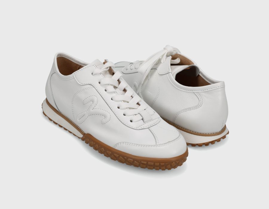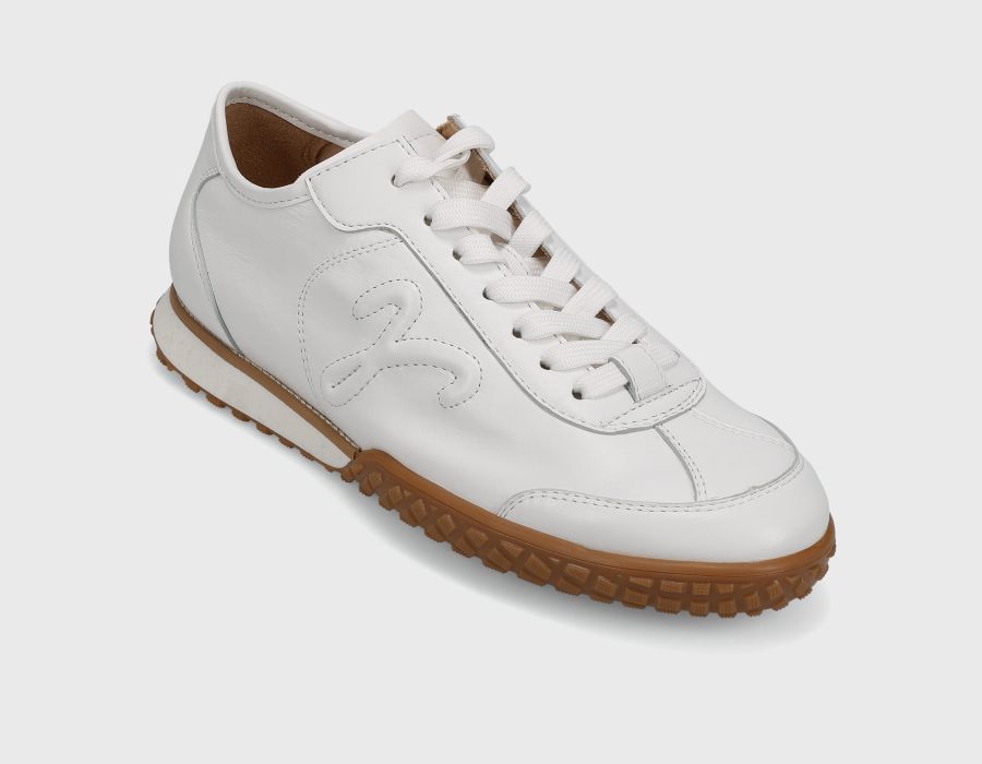 Elevate your everyday stride with the Peak—a lace-up athleisure shoe that seamlessly blends comfort and style. Featuring an ultra-padded removable insole for customizable cushioning and all-day support, plus a durable 1-inch rubber sole designed to keep you grounded through any activity. The crisp white glove nappa leather delivers a clean, versatile aesthetic that transitions effortlessly from gym to street.