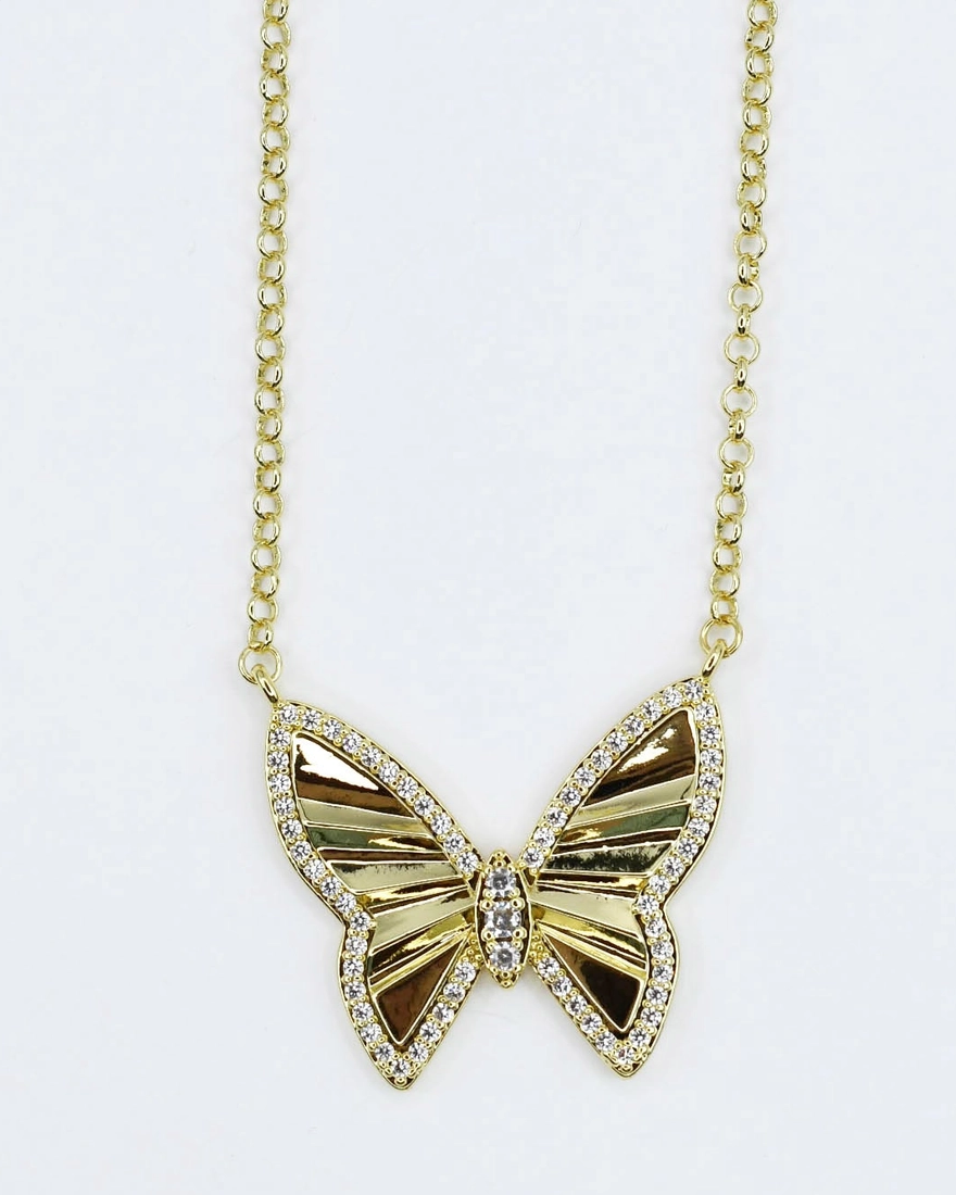 * Featuring a radiant butterfly pendant accented with shimmering crystal details and sleek enamel wings. This necklace captures the beauty of transformation and elegance. * Perfect for layering or wearing solo. * 17 inches + 3 inches extender.