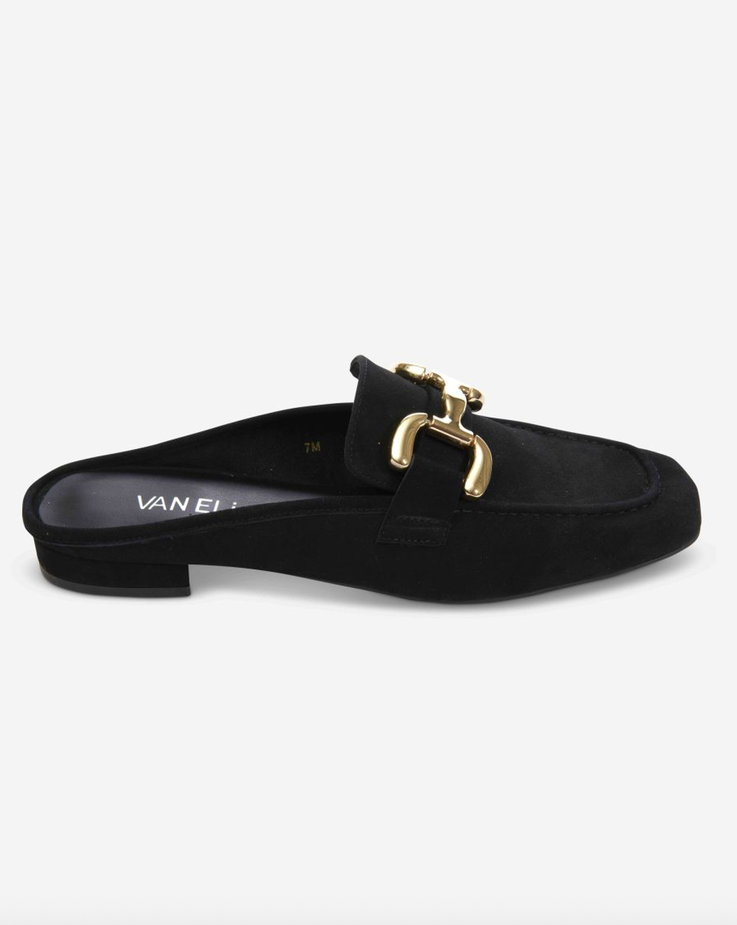 The SHAINE mule combines a modern square-toe silhouette with a refined loafer style, featuring an oversized metal bit keeper for a bold statement. Designed with a padded insole and a .75-inch covered heel, it offers both comfort and subtle elevation, perfect for sophisticated, everyday wear.