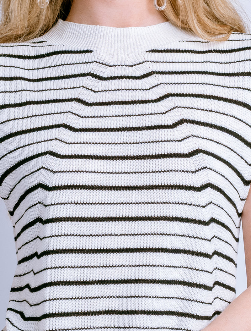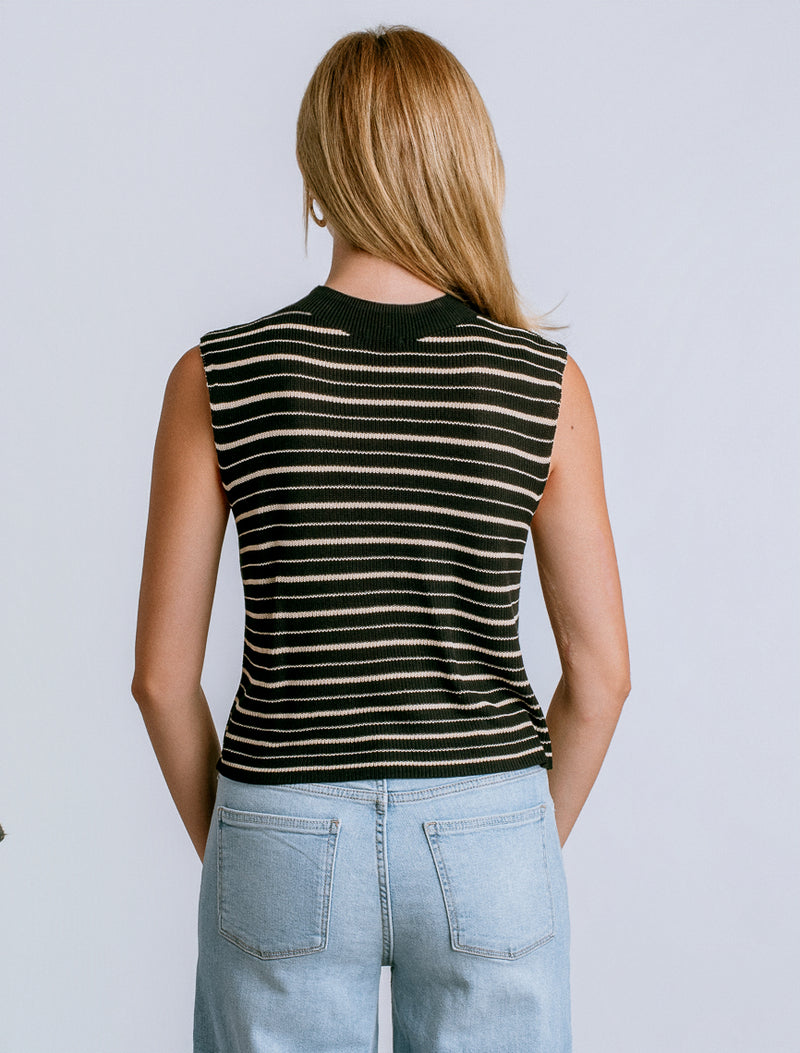 The Tira Tank combines effortless style with luxurious comfort. This mock neck tank features a striking two-tone multi-stripe pattern and distinctive raglan accents that add contemporary flair to your everyday wardrobe. Crafted from 100% viscose, the fabric drapes beautifully while offering a soft, breathable feel perfect for warm weather layering or standalone wear. A versatile piece that transitions seamlessly from casual to polished looks.