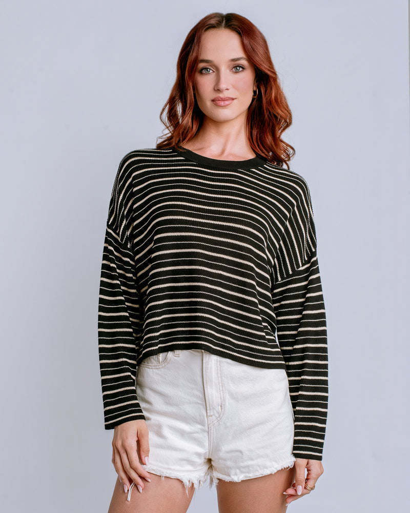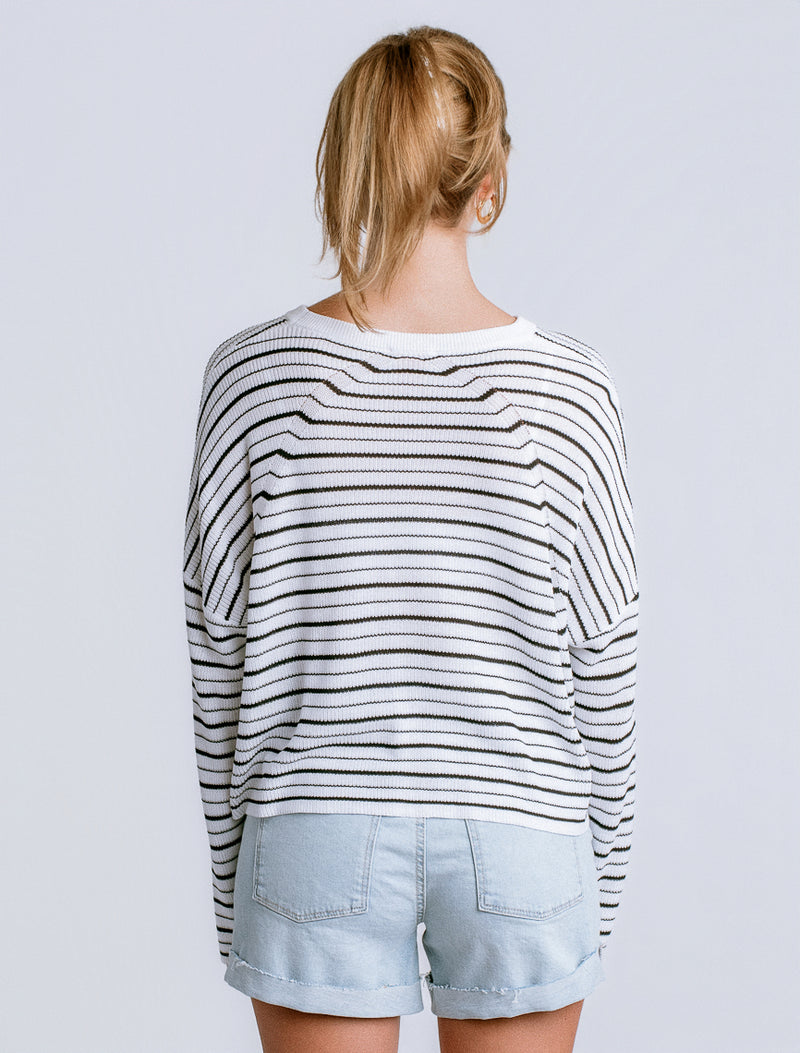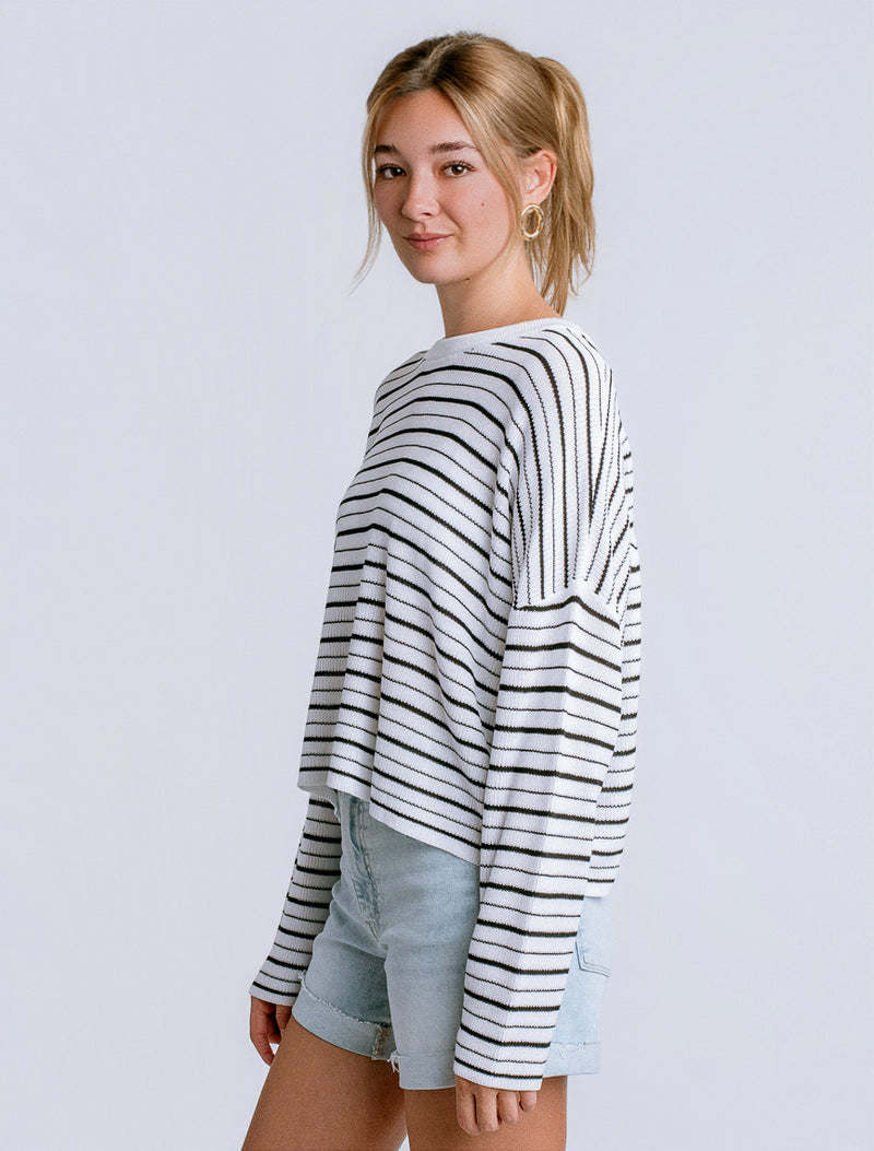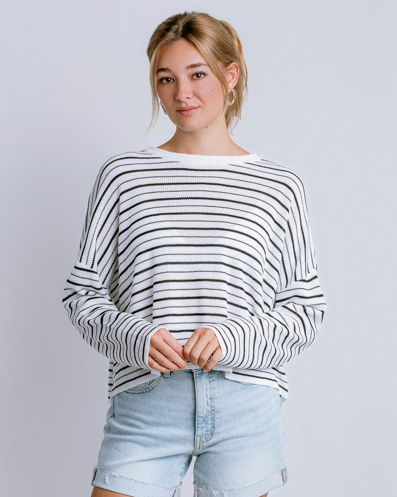Effortless layering meets relaxed style with the Tira Top. This oversized crew neck features a striking two-tone multi-stripe pattern that pairs seamlessly with your everyday wardrobe. Crafted from 100% viscose, it drapes beautifully while maintaining a soft, breathable feel perfect for transitional seasons. The generous fit makes it ideal for comfortable all-day wear or styled over fitted pieces for added dimension.