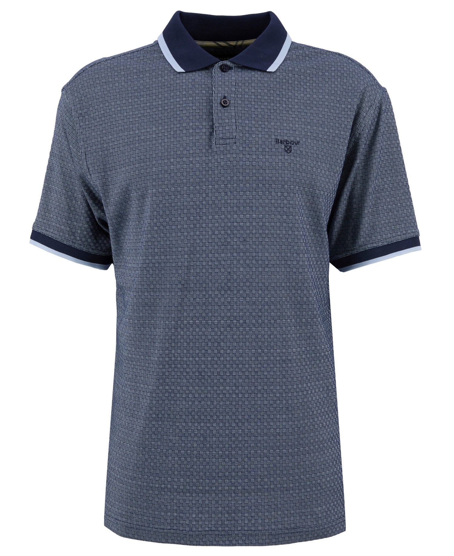 The Barbour Weston Textured Polo Shirt is crafted from a cotton-poly blend in a two-tone jacquard interlock for a subtle textured finish. Cut to a regular fit, it features tipping detail to the collar and cuffs, combining understated design with modern comfort for a refined everyday polo.