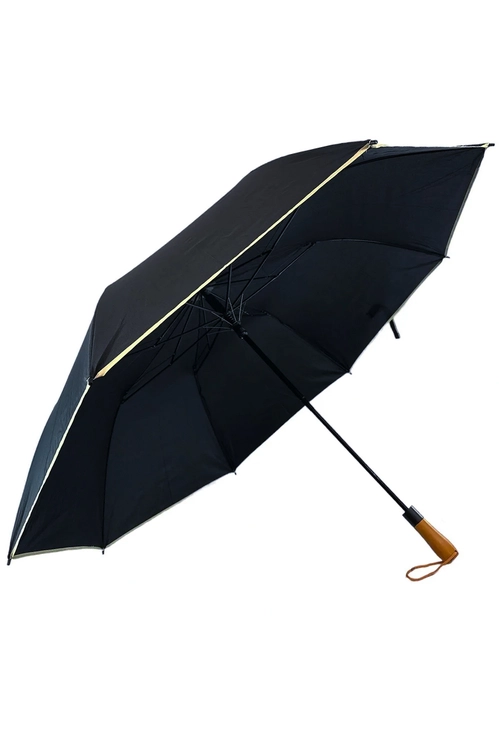 This Wooden Handle Travel Umbrella boasts a sleek and sturdy design, including a black metal shaft, 8 metal ribs, and a waterproof pongee fabric. With a dimensions of 24" (wingspan: 45"). Comes with a monochrome carry bag sleeve and a push button feature.